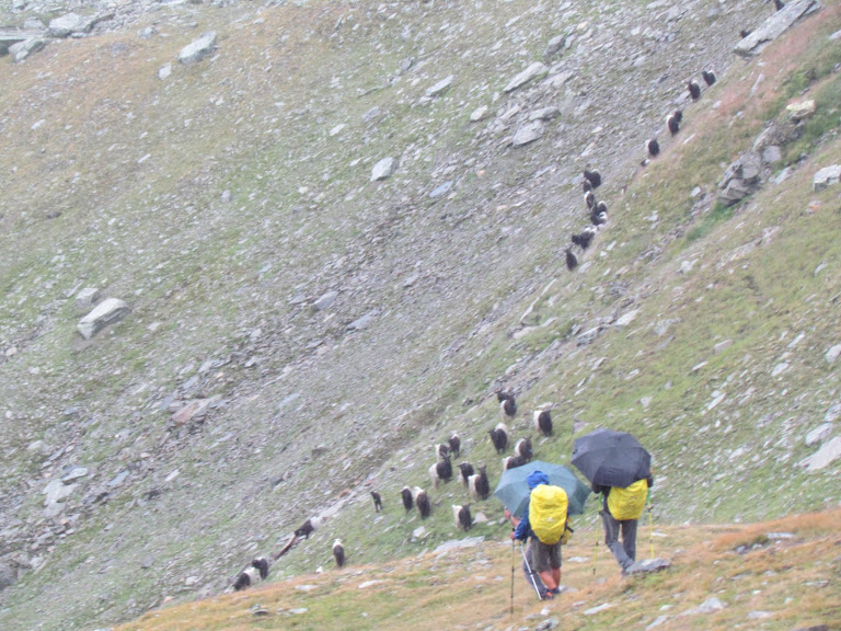 Il famoso panorama resta nei ricordi e, in queste condizioni, decadono le consuete velleità di un giro ad anello. Ci rituffiamo nella nebbia e seguiamo in discesa il percorso di salita. Più in basso la foschia fa spazio ad un forte acquazzone, per fortuna di breve durata. Dopo un’ora e mezza di umida discesa arriviamo, insieme al sole, al pianoro sotto la cascata. In riva al torrente ci rifocilliamo asciugandoci tranquillamente. I kit anti-pioggia, per colpa del vento, non ci hanno dato un grande aiuto. Con tutta calma rientriamo in patria mentre sole e pioggia continuano a litigare.