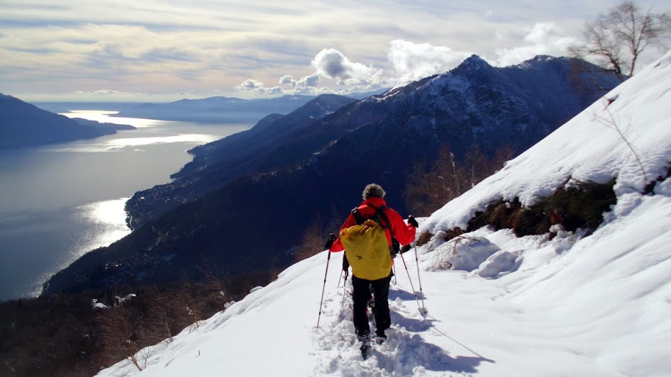 Un’escursione per tutti, con dislivello modesto, che richiede circa quattro ore con passo tranquillo, si può anche trasformare in un'odissea senza fine al variare delle condizioni della montagna. Per questo vige sempre la sacra regola di non girare mai soli, soprattutto d’inverno. Con tanta neve fresca e pesante può essere un problema imbattersi in un buco nascosto dalla neve, a meno che ci sia una mano amica che ti aiuta, ma solo dopo avere accuratamente immortalato con la macchina fotografica la tua situazione di difficoltà. La giornata è stupenda. Meta sicura e tranquilla è il monte Carza, il più bel punto panoramico sul Lago Maggiore.