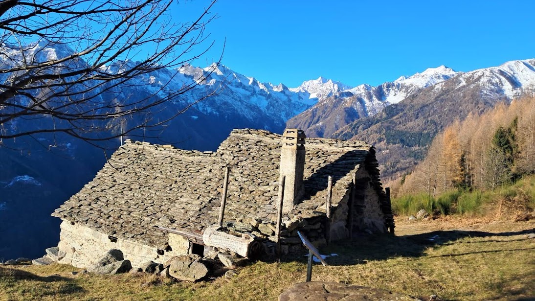 Ci troviamo a Mocogna, nel parcheggio sulle rive del torrente Bogna, e proseguiamo per Monteossolano, frazione di Domodossola a quota 784. Attraversiamo il paese e, dopo le ultime case ed un tornante, abbandoniamo la strada per l’Alpe Pertus ed imbocchiamo sulla destra l'evidente sentiero per l’Alpe Reso, 1226, dove arriviamo dopo poco più di un’ora di cammino tranquillo.