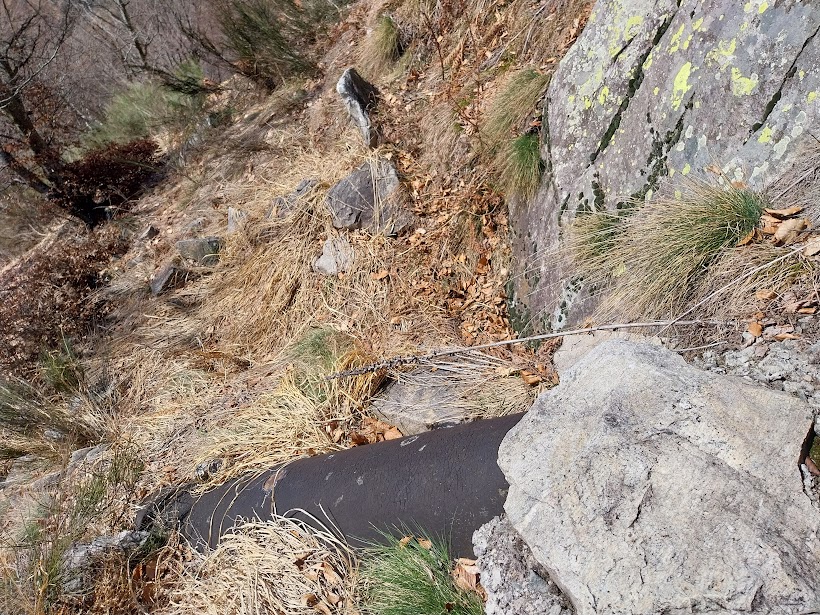 Non solo questa, ma tutte le strade montane “sbarrate”, ovviamente. Parcheggiamo e risaliamo sull’asfalto per pochi minuti fino ad incontrare sulla sinistra, al disotto della strada, il sentiero per l’Alpe Termine. Breve pausa all’Alpe Curtavello, 877, immersa nel bosco, dove si trovano baite in ottimo stato insieme ad altre diroccate. Dopo un’ora di cammino siamo all’Alpe Termine, 1065, splendido balcone panoramico su Domodossola e sulla piana dell’Ossola. Durante la pausa colazione riceviamo la telefonata da Palermo di un anziano ex alpinista che ormai preferisce le crociere alle nostre montagne.