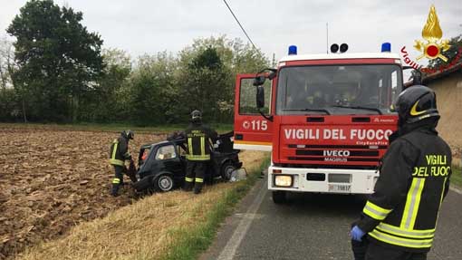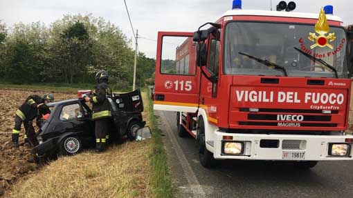 SALUSSOLA - 17-05-2019 - Incidente stradale questo pomeriggio, venerdì 17 maggio, sulla strada fra Salussola e frazione Vigellio. Sul posto sono intervenuti i vigili del fuoco che hanno estratto una persona dall'auto che è stata poi presa in carico dal personale del 118. Presenti anche i Carabinieri di Cavaglià.