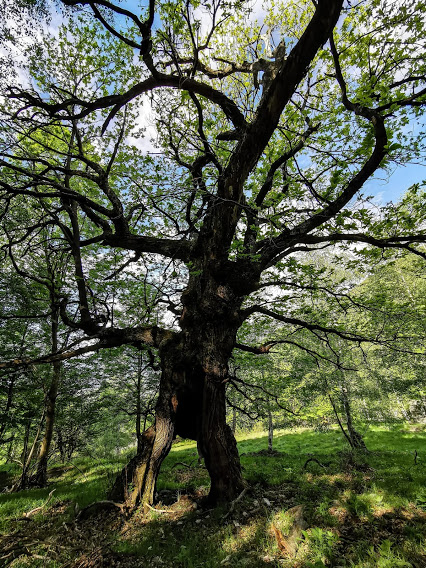 Di qui il sentiero ben segnato scende ad attraversare sul Ponte del Diavolo, 600, la profonda forra del torrente Isorno, uno dei tanti paradisi del canyoning presenti nelle valli ossolane. Oltre il ponte si comincia a salire subito in presa diretta. Del resto il dislivello perso lo si deve pur recuperare in qualche modo. Il sentiero è sempre evidente e, a quota 820, raggiungiamo le prime baite di Aulogna. In questo bosco ci sono degli spettacolari castagni ultracentenari, uno dei quali forma alla base un'ampia galleria che può fare da cornice naturale ed abbellimento ad anziani che si vogliono far fotografare. Ci teniamo a destra e, sempre in presa diretta, saliamo a quota 924, dove la condotta forzata quasi orizzontale proveniente da Cippata si tuffa verso il fondovalle.