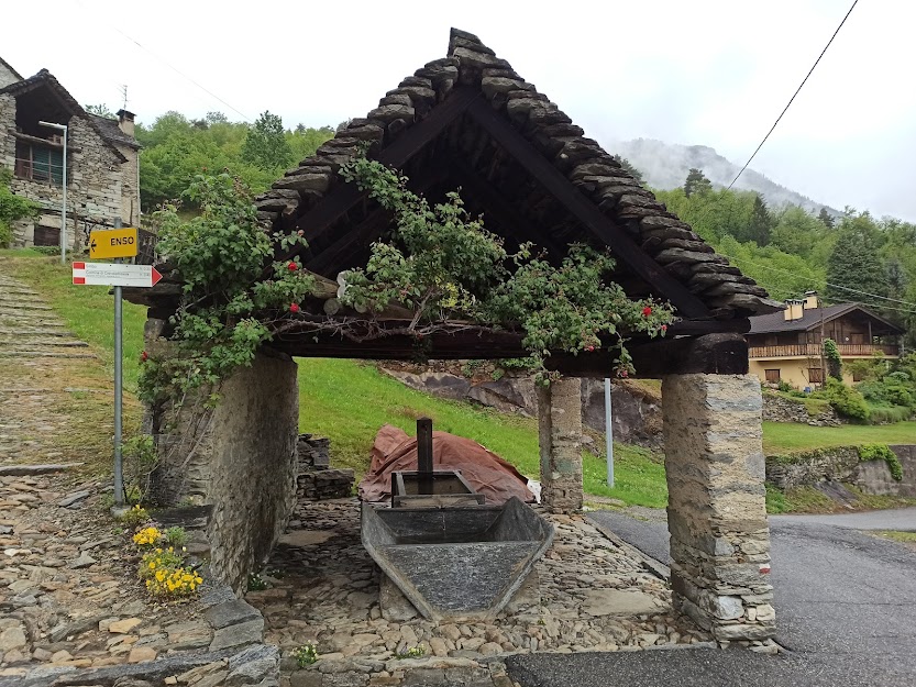 Anche se per ora non piove, il tempo stringe e iniziamo la discesa, tagliando qualche tornante lungo il sentiero pulito di recente. All’altezza di Scezza teniamo ancora la sinistra e passiamo da Simbo, Cresto, Traversagno, Castagnolo e dal bacino idroelettrico fino a tornare su via Danda e alla casa del nostro cuoco guida (un’ora), sotto la pioggia. La sua cucina imprevedibilmente buona ci rimette di buonumore.