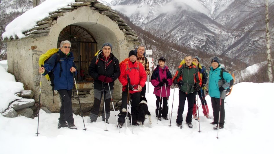Ci attende una brutta giornata con pioggerella e nevischio. Si sceglie, quindi, un’uscita adatta alle avverse condizioni meteorologiche ed anche ai meno allenati. Le numerose e belle frazioni di Montecrestese offrono sempre angoli suggestivi e ricchi di storia. Le strade rispettano le antiche mulattiere e questo aumenta il fascino dei luoghi.