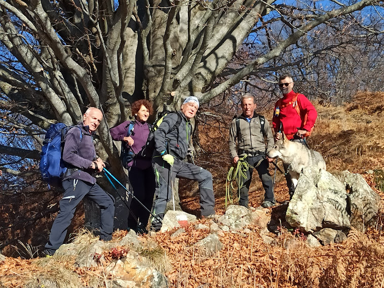 Anche oggi è una splendida giornata e ci godiamo il bellissimo panorama. Rispetto alle precedenti salite non troviamo il consueto spessissimo strato di foglie di faggio poco sotto la cima. Si vede che anche il vento sta cambiando, nel vero senso della parola. Percorriamo verso nord – est la splendida dorsale che separa la Val Pogallo dal versante rivolto verso il Lago.