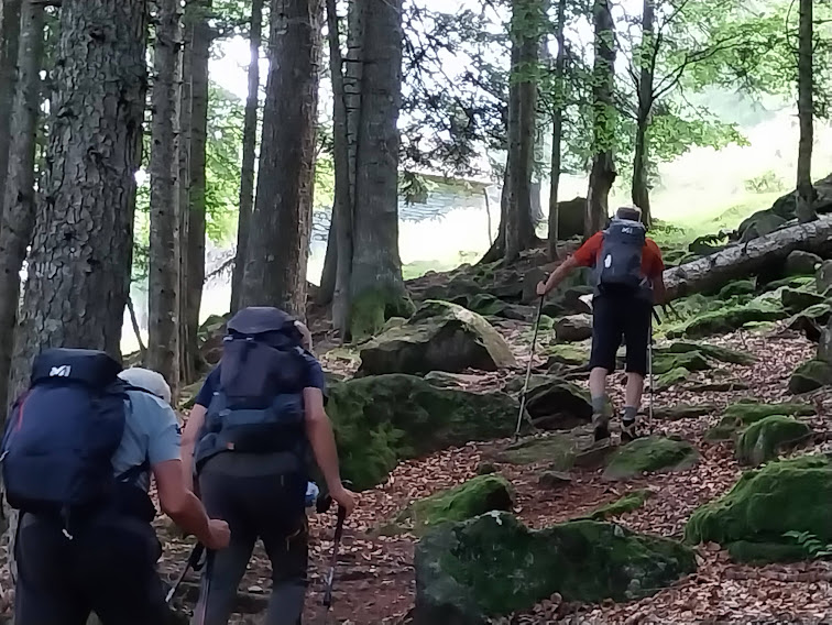 Qui i padroni incontrastati sono quattro socievoli cavalli. La nostra meta sarebbe raggiunta, ma è ancora presto, stiamo bene e del gruppo A, impegnato in un’escursione ben più lunga, non c’è ancora traccia. Decidiamo quindi di alleggerire gli zaini e, con il beneplacito dei cavalli, di andare loro incontro. Di qui in su il sentiero è un po’ più impegnativo, ma ben tenuto, evidente, senza alcun problema.