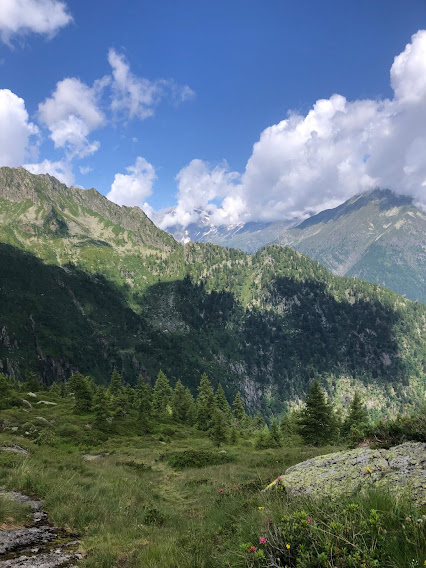 CEPPO MORELLI- 16-07-2023-- Due anni fa un quartetto di Murmäta, del quale facevo parte, era salito al Passo del Tignaga dalla valle omonima ed era sceso sul versante dei bellissimi alpeggi di Girareccio e Laveggio. Quest’anno sono tornati sullo stesso percorso tre amici che non lo conoscevano, accompagnati dalla indispensabile badante e da un esperto che già era salito di lì. Io, insieme ad un ex alpinista sempre giù d’allenamento e a due amici al rientro dopo mesi difficili, sono andato incontro a loro da Girareccio.