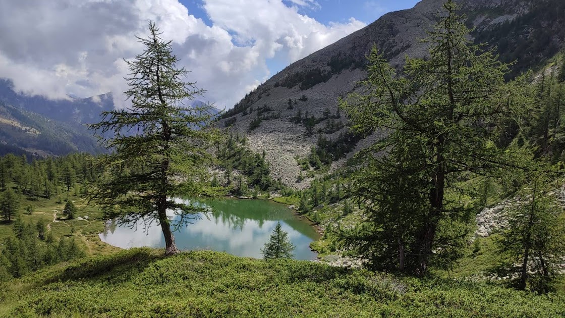 Parcheggiamo nel grande piazzale di San Bernardo, 1630, dove adesso le modalità di sosta sono ben indicate da una piantina evidente e da segnalazioni sul terreno. Dal posteggio il sentiero D12, ben segnato ed evidente, s’inerpica subito verso occidente nel bel bosco di larici, alternato a verdi radure di rododendri.