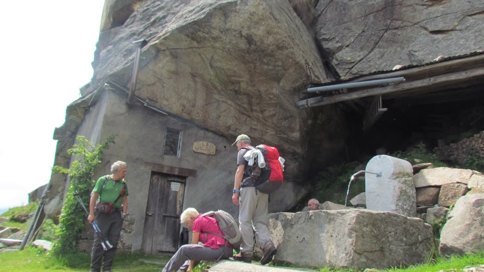 Dopo il pranzo s'imbocca la variante, ben indicata, che scende verso sud. In poco più di mezz'ora di bel sentiero, magnificamente lastricato nell'attraversamento di una pietraia ad opera di Ales, raggiungiamo la sua Spelonca,1400. Non c'è spazio per descrivere quello che troviamo. E’ stato costruito, in trent'anni di lavoro, dal genio e dalla determinazione del padrone di casa. Vi basti sapere che, con sistemi di sollevamento artigianali, di sua invenzione (leve, paranchi, martinetti, ecc...) ha anche spostato massi di 30 tonnellate.